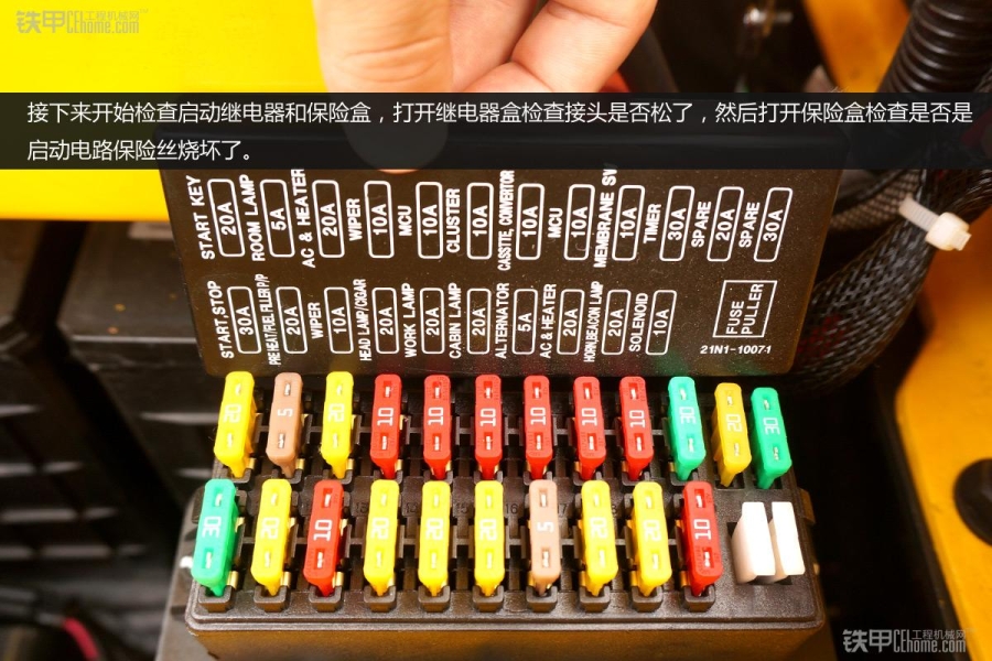 接下來開始檢查啟動繼電器和保險盒,打開繼電器盒檢查接頭是否鬆了,然後打開保險盒檢查是否是啟動電路保險絲燒壞了。